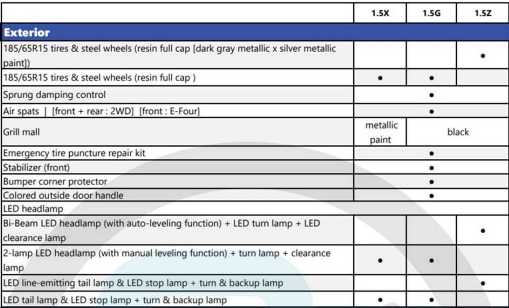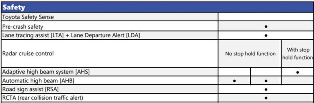 - Pre-crash Safety (Pedestrian [day/night], bicycle [day/night], motorcycles [day] Collision avoidanle support type with detection function)